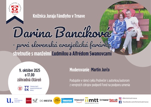 Knižnica Juraja Fándlyho v Trnave pozýva vo štvrtok 9. októbra 2025 o 17,00 hodine na rozprávanie o prvej slovenskej evanjelickej farárke Daniele Bancíkovej.