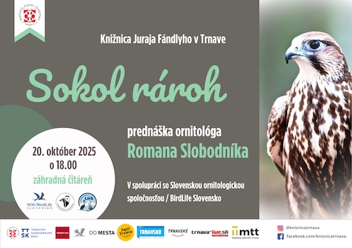 Čo robiť, keď nájdete na svojom balkóne vtáča? Aj na túto otázku môžete dostať odpoveď, ak prijmete pozvanie na prednášku ornitológa Romana Slobodníka. Knižnica Juraja Fándlyho v Trnave ju organizuje v spolupráci so Slovenskou ornitologickou spoločnosťou / BirdLife Slovensko 20. októbra 2025 o 18,00 hod. v záhradnej čitárni.