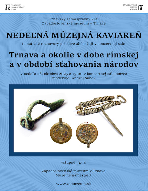 Západoslovenské múzeum v Trnave pravidelne pripravuje cyklus podujatí s názvom Nedeľná múzejná kaviareň. Tematické rozhovory pri káve a čaji v koncertnej sále budú v októbri pokračovať rozprávaním múzejného archeológa.