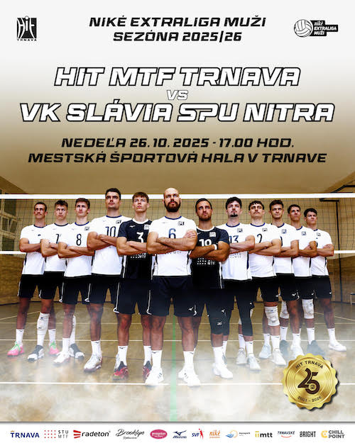 Volejbalový tím Hit MTF Trnava nastúpil v nedeľu 26. októbra 2025 na premiérový zápas v najvyššej slovenskej súťaži. Od 17. hodiny privítajú trnavskí volejbalisti na palubovke Mestskej športovej haly VK Slávia SPU Nitra.