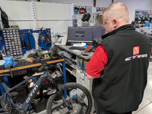 Servisní techníci v cyklocentre sú pravidelne školení, samozrejmosťou je vždy aktuálne softvérové a technické vybavenie odporúčané výrobcami bicyklov