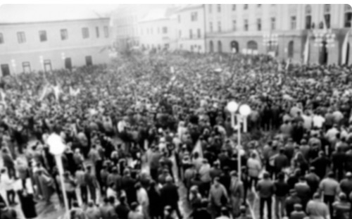 Trojičné námestie počas Nežnej revolúcie v roku 1989