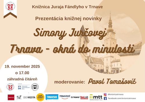 Knižnica Juraja Fándlyho v Trnave pozýva v stredu 19. novembra 2025 o 17. hodine priaznivcov histórie na uvedenie novej knihy Simony Jurčovej zo Západoslovenského múzea v Trnave pod názvom Trnava – okná do minulosti. Tretia kniha o Trnave od tejto autorky priblíži čitateľom a čitateľkám devätnásť lokalít v Trnave – devätnásť „okien do minulosti“, ktoré prešli v ostatnom období zásadnou zmenou.