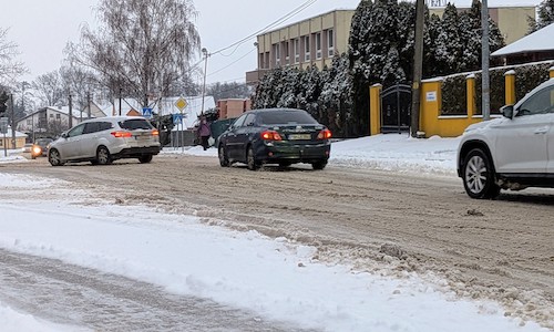 Na cestách leží utlačená vrstva snehu