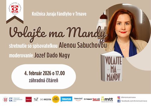 V rámci cyklu Súčasná slovenská literatúra pozýva Knižnica Juraja Fándlyho v Trnave v stredu 4. februára 2026 o 17.00 hodine na stretnutie so spisovateľkou Alenou Sabuchovou.