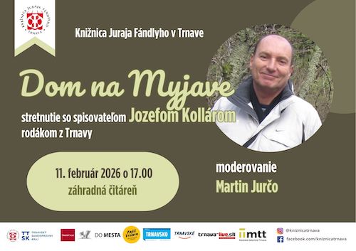 Knižnica Juraja Fándlyho v Trnave vás pozýva v stredu 11. februára 2026 o 17,00 hodine na besedu s týmto spisovateľom, Trnavčanom, ktorý však celý život pôsobí v Bratislave.