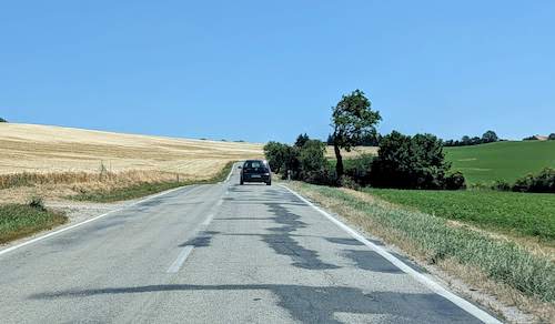 Na ceste je množstvo prasklín a výtlkov. Poškodený úsek prešiel pred časom akútnymi lokálnymi opravami.