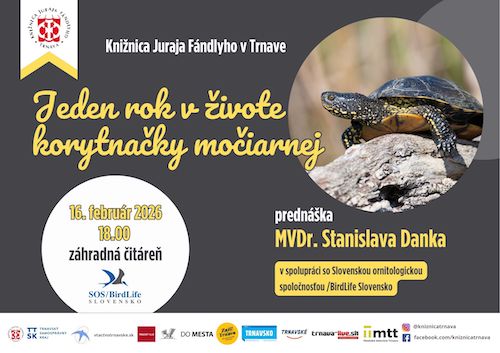 Knižnica Juraja Fándlyho v Trnave v spolupráci so Slovenskou ornitologickou spoločnosťou /BirdLife Slovensko pozýva na v pondelok 16. februára 2026 na prednášku o korytnačke močiarnej.