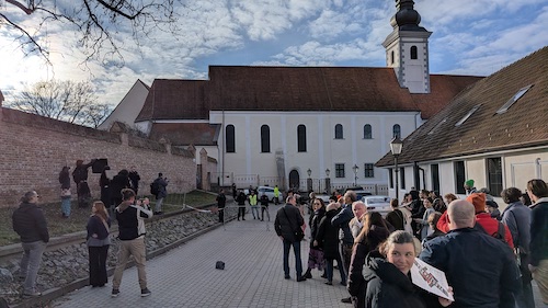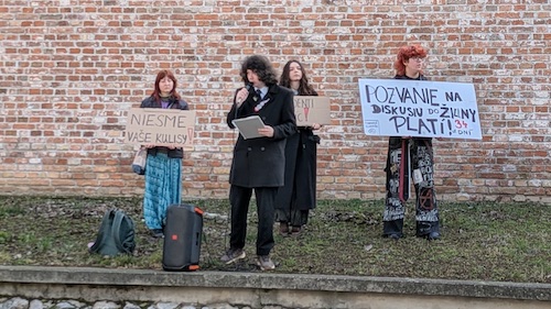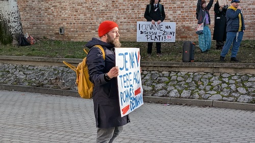 Pôvodne ohlásené miesto protestu pred budovou múzea muselo byť zmenené kvôli prísnym bezpečnostným opatreniam. Väčšina účastníkov sa presunula na Kapitulskú ulicu, viacerí však čakali na príjazd premiérskej kolóny na chodníku oproti múzeu.