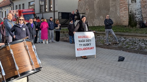 „Nehanbíte sa, že zastupujete takéhoto kolaboranta, ktorý nás ťahá do Ruska? Vy, mladí chlapi, kde chcete žiť, v akej krajine? V Rusku?,“ pýtali sa protestujúci zástupcov strany Smer – SD.