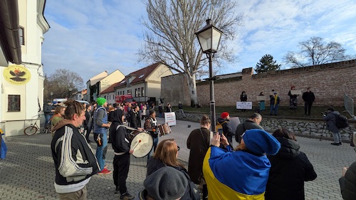 „Nehanbíte sa, že zastupujete takéhoto kolaboranta, ktorý nás ťahá do Ruska? Vy, mladí chlapi, kde chcete žiť, v akej krajine? V Rusku?,“ pýtali sa protestujúci zástupcov strany Smer – SD.