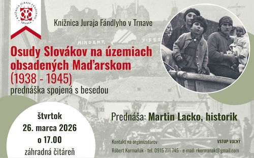 Knižnica Juraja Fándlyho v Trnave pozýva 26. marca 2026 o 17,00 hod. priaznivcov histórie na stretnutie s historikom Martinom LACKOM (1976).