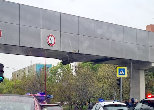 Ako informovala trnavská polícia, vodič nákladiaku zachytil časťou vozidla lávku pre peších, ktorá vedie ponad cestu do nákupného centra City Arena.