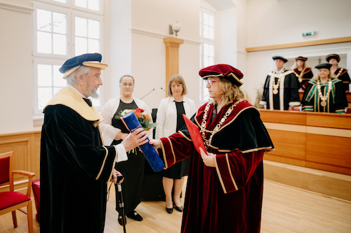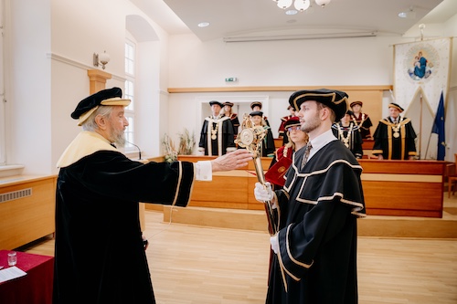 Diplom mu odovzdala prof. PhDr. Zuzana Lopatková, PhD., prorektorka pre vedeckú, umeleckú a edičnú činnosť.