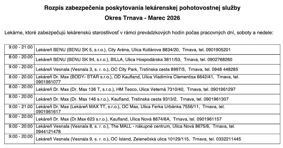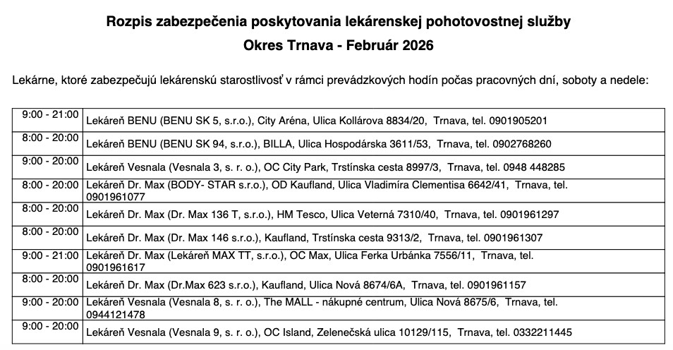 POHOTOVOSTNÉ SLUŽBY LEKÁRNÍ